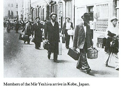 杉原氏がユダヤ教の中心的教育機関ミール・イェシーバーの指導者・学生にビザ発給→神戸→上海では憲兵隊がミールを厚遇 (画像は神戸に到着したミール学校の学生)