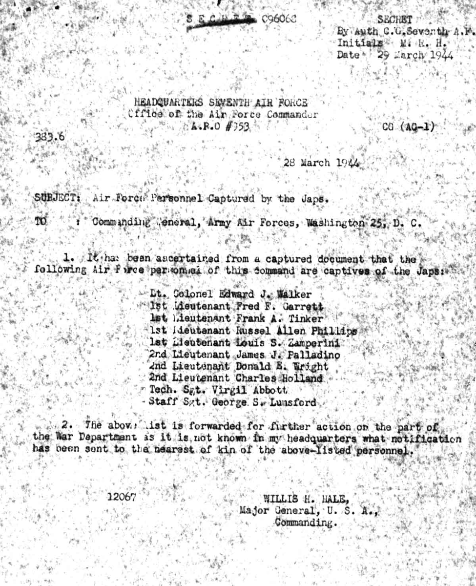 @masterlow @AkioYoyou 日本軍はザンペリーニを捕虜にした事を赤十字を通じて米国に知らせていなかった、という筋立てにしているようですが米軍が知っていた文書がsecretとして存在します。何で嘘仕立てで実話なんですか。 pic.twitter.com/NEP7tiHIuN
