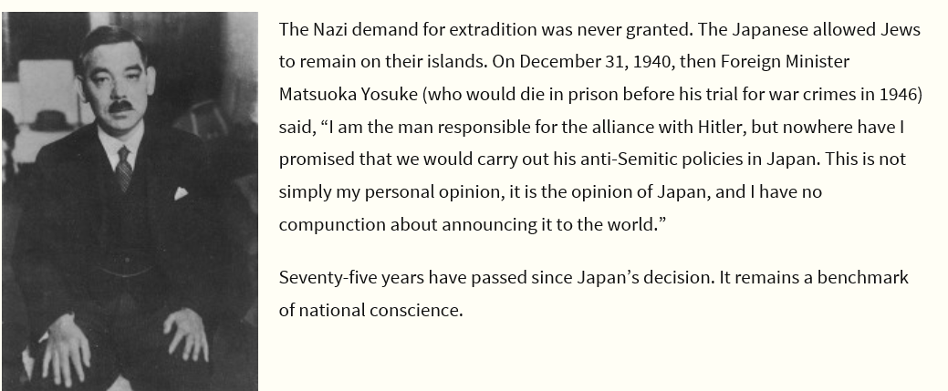 Japanese gov. knew about Holocaust during wartime and against that https://jewishcurrents.org/75th-anniversary-japans-stand-anti-semitism-23361