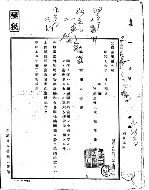 @violetkaleido @insatvxq @akusauyros 失礼します。アジア歴史センターでこれを見つけました。在満大使館。厳しい言葉が並びますが「査証の無い者には通過ビザ・日本船にも乗せる・(安全な)租界へ送る」 pic.twitter.com/NZg1MIXE5E