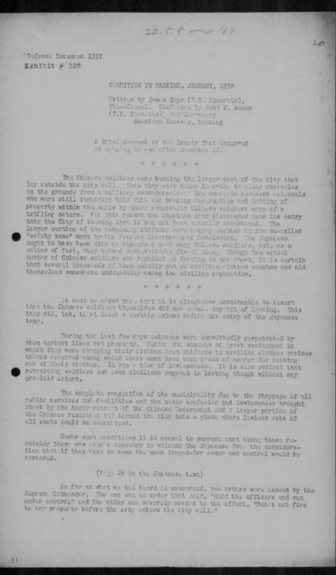 はてエスピー文書= "James Espy -The situation in Nanking" の元原稿画像はどこかにあるのかな。
