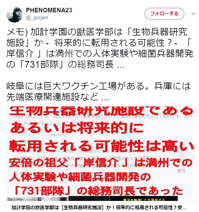 ※しかし笑ってはいられない。加計学園問題を細菌兵器だの731部隊だのに関連づけているサヨクは意外に多い。 pic.twitter.com/G5bL4Z9xoy