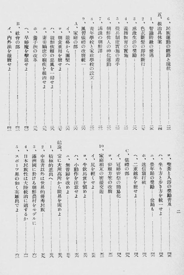 文字が滲んで見えにくいが目次の一部。