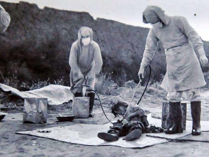 @Zikque @exoticcar0011 @News_Y これと同じ消毒風景だが、消毒=人体実験なのか?