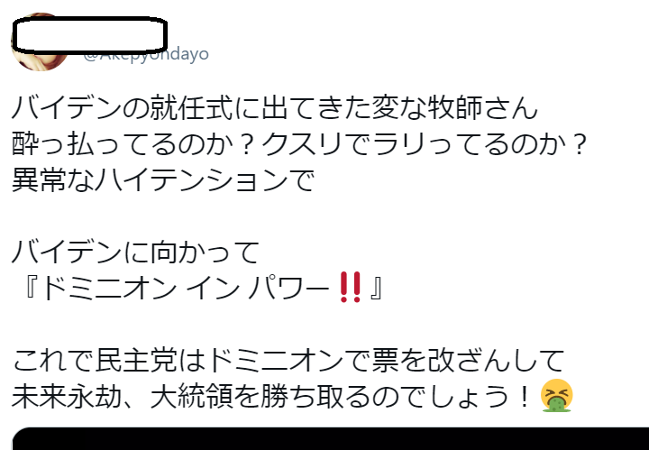 情報取るためにアメリカのジャーナリスト個人アカをフォローしているが、殆どがバイデン大統領支持らしく画像付き称賛がタイムラインに流れてきてゾワッとしてしまう。